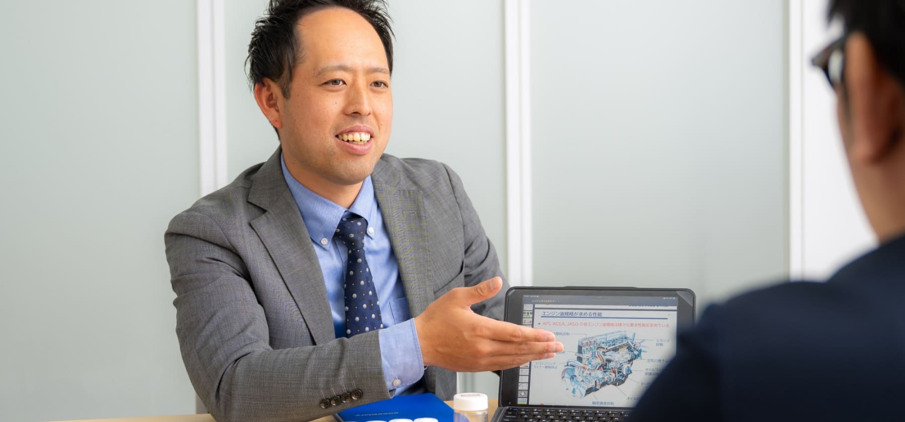営業の本質を、SSの現場で学んだ。 - 私は現在、法人営業として潤滑油を中心に幅広いご提案を行っています。お客様は整備工場や運送会社など。業界や業種にあったご提案を行っており、最近では時代に合わせた商材のご提案も増えてきています。そんな法人営業に取り組む中でもSSでの経験が生きています。