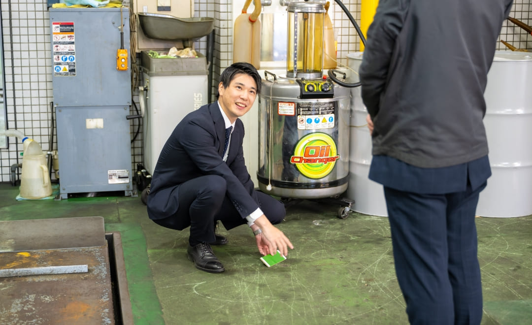 潤滑油を通して私の世界が広がる。 - 私は現在、潤滑油のご提案・販売を任されています。「潤滑油」は、皆さんにとって馴染みのない言葉かもしれませんが、機械をスムーズに動かすために大切な役割を果たしています。身近なものだと、自転車のチェーンにさすオイルやゲーム機のコントローラーに注入されるグリースなどがあります。